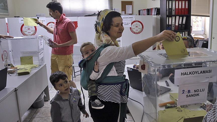 Avrupa ülkeleri arasında en fazla Türk seçmenin bulunduğu Almanya'da şu ana kadar 609 bin 305 kişi oy kullandı. Fransa'da 132 bin 213, Belçika'da 66 bin 927, ABD'de 28 bin 236, Avustralya'da 14 bin 217, Avusturya'da 48 bin 342, KKTC'de 34 bin 636, İsviçre'de 47 bin 612 kişi oy kullandı.