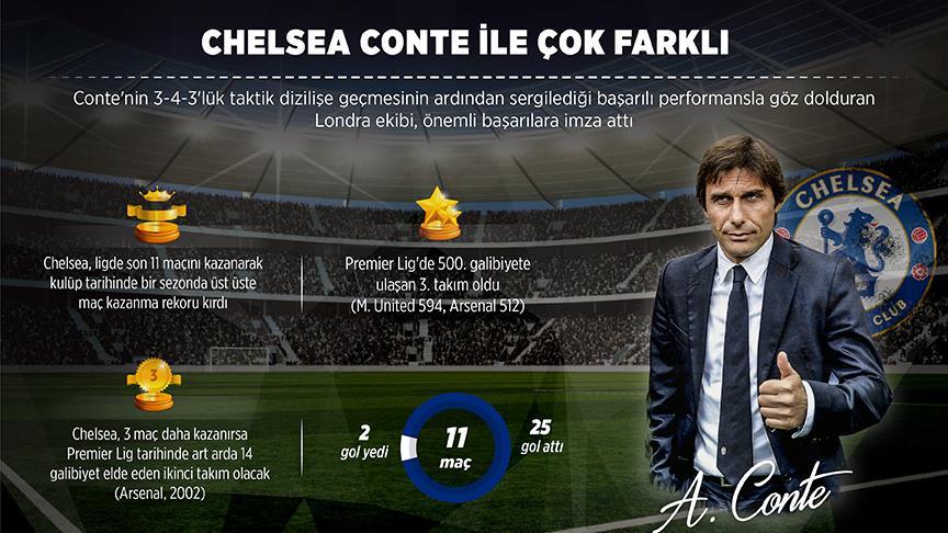 İtalyan Antonio Conte, Premier Lig'de ilk 17 haftalık süreçte 14 galibiyete ulaşan ilk teknik direktör olarak kayıtlara geçti.
