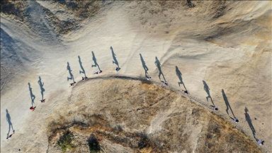 Dağlık bölgedeki etapları ve çamurlu araziyi geçmeye çalışan sporcular, bitiş çizgisine önce ulaşmak için çaba sarf ediyor.