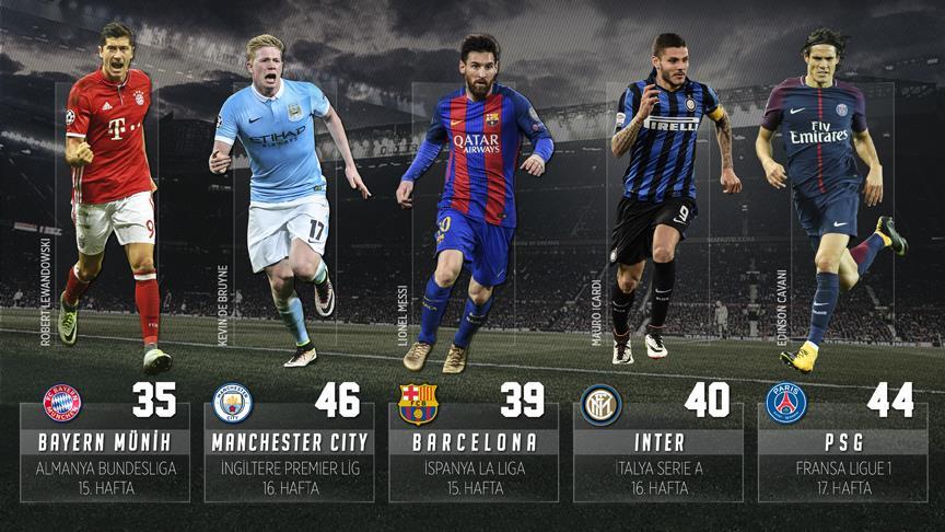 İngiltere'de Manchester City, İspanya'da Barcelona, Almanya'da Bayern Münih, İtalya'da Inter, Fransa'da ise Paris Saint-Germain (PSG), puan tablosunun zirvesinde yer aldı.