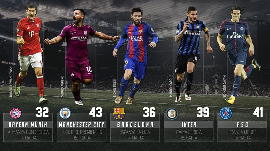 İngiltere'de Manchester City, İspanya'da Barcelona, Almanya'da Bayern Münih, İtalya'da Inter, Fransa'da ise Paris Saint-Germain (PSG), puan tablosunun zirvesinde yer aldı.