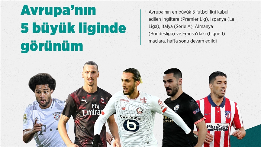 İngiltere'de Manchester City, İspanya'da Atletico Madrid, İtalya'da Milan, Almanya'da Bayern Münih, Fransa'da ise Lille, puan tablosunun zirvesinde yer aldı.