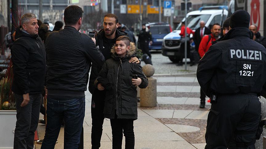 Kafileyi otelin önünde Beşiktaşlı taraftarlar karşıladı. Bazı futbolcular, bariyerin arkasında bulunan taraftarlara el sallarken, oyunculardan Cenk Tosun, yanına gelen bir taraftarla fotoğraf çektirdi.