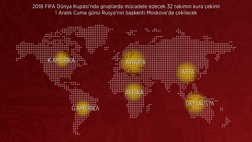 FIFA'nın internet sitesinden yapılan açıklamada, 1 Aralık Cuma günü Rusya'nın başkenti Moskova'daki Kremlin Sarayı'nda çekilecek grup kuraları öncesinde torbaların belirlendiği ifade edildi.