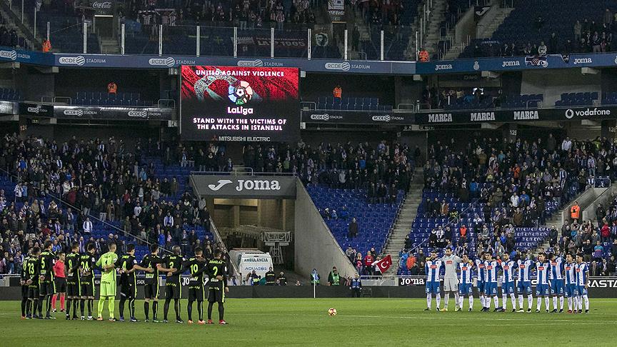 İstanbul'daki terör saldırısında hayatını kaybedenlerin anısına İspanya' 1. ve 2. liglerinde oynanan tüm maçların başından bir dakikalık saygı duruşu yapıldı. RCD Espanyol ve Sporting de Gijon takımlarının oyuncuları da da oynayacakları maç öncesi saygı duruşunda bulundu.