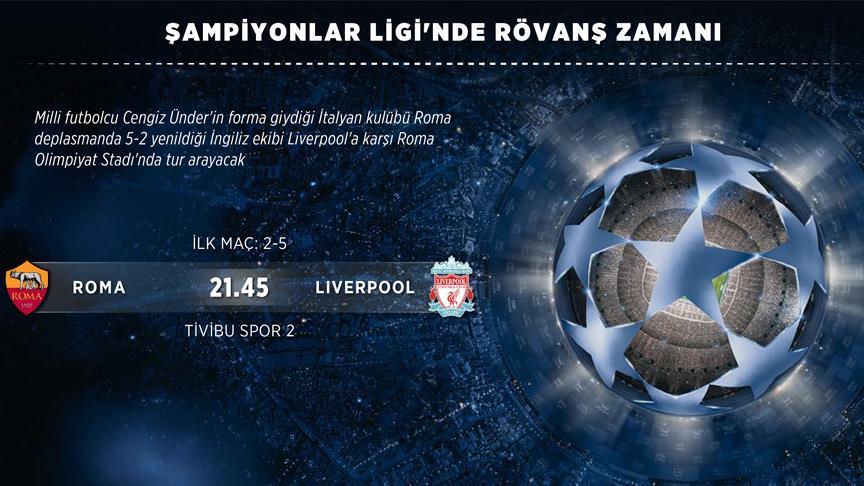 Milli futbolcu Cengiz Ünder'in forma giydiği İtalyan kulübü Roma ise deplasmanda 5-2 yenildiği İngiliz ekibi Liverpool'a karşı Roma Olimpiyat Stadı'nda tur arayacak.
