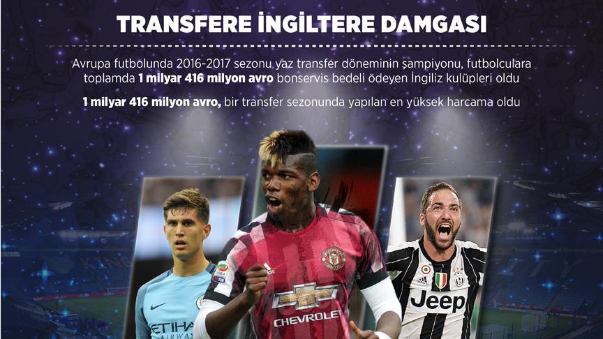 Yaz transfer döneminin şampiyonu, futbolculara toplamda 1 milyar 416 milyon avro bonservis bedeli ödeyerek kadrolarını güçlendiren İngiltere Premier Lig kulüpleri oldu. Bu miktar, bir transfer sezonundaki yapılan en yüksek harcama olarak da dikkati çekti.