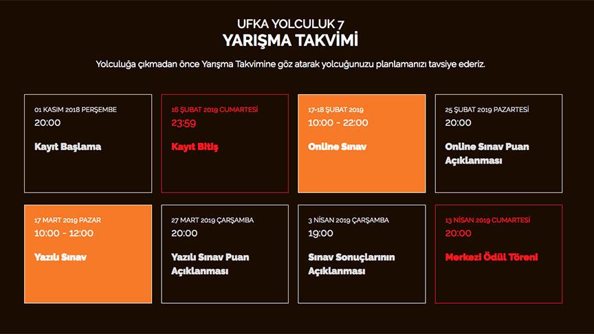 Yarışmaya dair deneme sınavları ve süreçle ilgili bilgiler "ufkayolculuk.com" internet sayfasında paylaşıldı. Başvuruların başladığı yarışmada, online sınav tarihi 17 ve 18 Şubat, yazılı sınav tarihi ise 17 Mart olarak belirlendi.