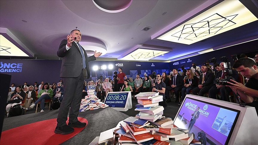 Programın sonunda gençlerle hatıra fotoğrafı çektiren Bak, onlara kitap hediye etti.