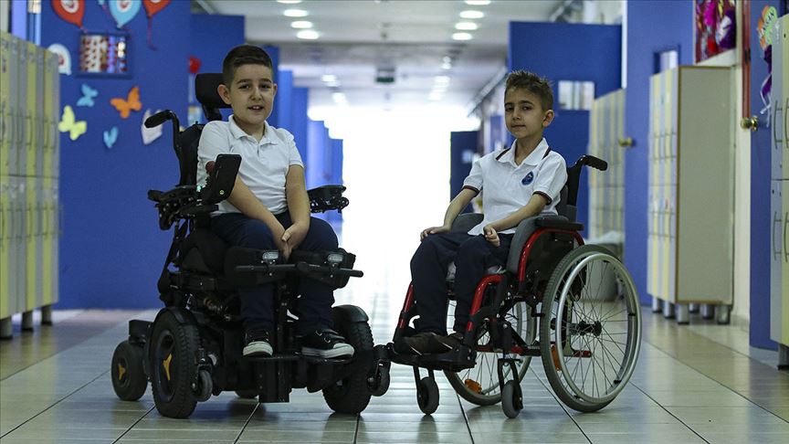 Milli Eğitim Vakfı (MEV) Gökkuşağı Özel Eğitim İlkokulun 2. sınıf öğrencisi omurilik felçli Nurullah Salih ile 4. sınıf öğrencisi Spinal Müsküler Atrofi (SMA) hastası Bekir Balkan, çalışma azimleri ve ailelerinin desteğiyle engellerini aşarak örnek bir başarıya imza attı.