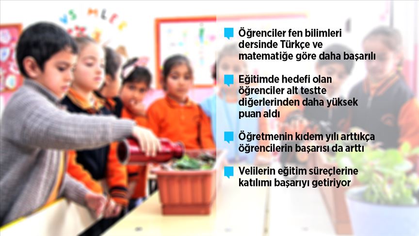 Milli Eğitim Bakanlığınca (MEB), öğrenci, öğretmen ve okulun akademik beceriler üzerindeki etkisini ölçmek için on binlerce 4'üncü sınıf öğrencisinin katılımıyla hazırlanan "Türkçe-Matematik-Fen Bilimleri Öğrenci Başarı İzleme Araştırması"nın veri analizleri tamamlandı.