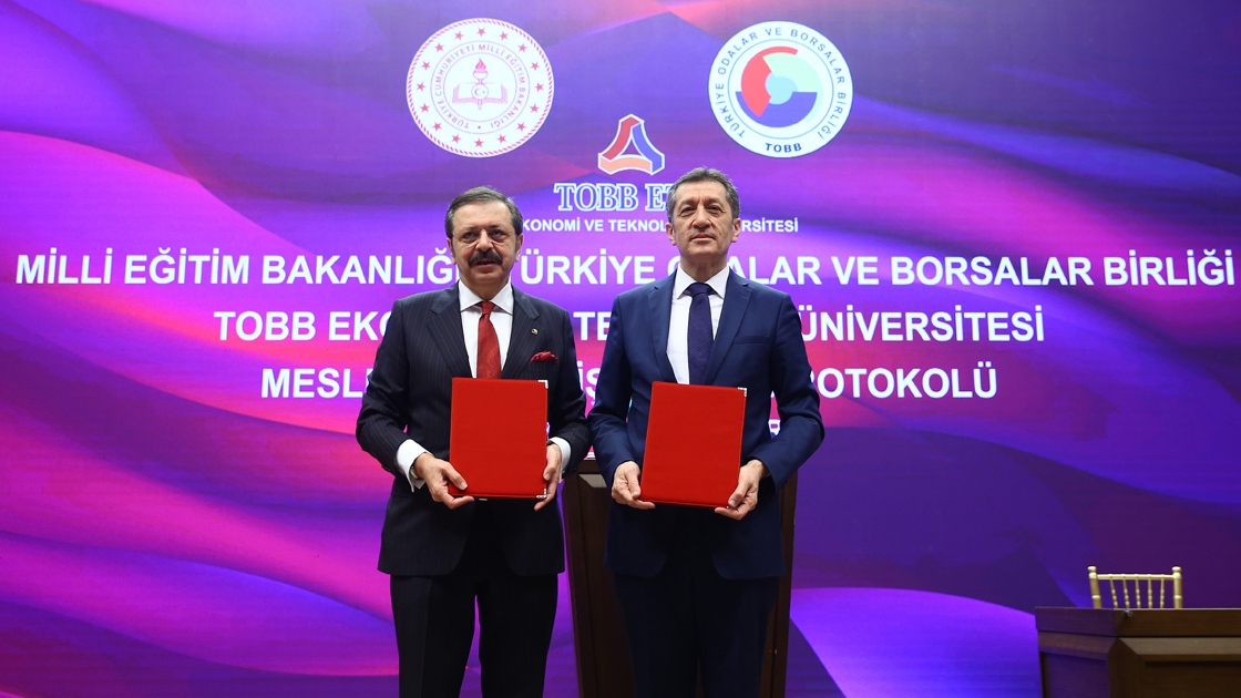 Milli Eğitim Bakanlığı (MEB) ile Türkiye Odalar ve Borsalar Birliği Ekonomi ve Teknoloji Üniversitesi (TOBB ETÜ) arasında "Mesleki Eğitim İş Birliği Protokolü" TOBB İkiz Kuleler Konferans Salonu'nda düzenlenen törenle imzalandı.