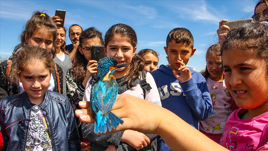 Iğdır'daki Aras Kuş Cenneti ve Halkalama İstasyonu'na gelen öğrenciler, kuş bilimini doğal ortamda kuşları görerek öğreniyor.