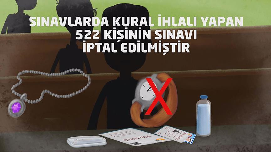 Filmde ayrıca, ÖSYM verilerine geçen yıl sınavlarda kural ihlali yapan 517 kişinin sınavının iptal edildiği bilgisine yer verildi. Geçen yıl YGS'ye giren 122 kişinin kural ihlali nedeniyle, bunlar içindeki 4 kişinin de sınav başlama uyarısından önce soruları okuduğundan sınavının iptal edildiği bilgisi paylaşıldı. ÖSYM, adaylara, salon başkanının sesli şekilde "Sınav başlamıştır" uyarısı öncesi ya da "Sınav bitmiştir" uyarısı sonrası soruları yanıtlamaya devam edenlerin kural ihlali nedeniyle sınavlarının iptal edileceği hatırlatmasında bulundu.