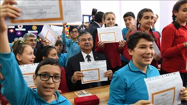 Burada kendisini Türk bayraklarıyla karşılayan öğrencilerle sohbet eden Özhaseki ve beraberdekiler, onlara karnelerinin yanı sıra çeşitli hediyeler verdi.