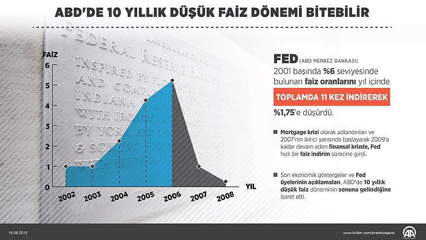ABD'de ekim 2009'da yüzde 10,1 ile rekor düzeye ulaşan işsizlik oranı, ağustos 2015'te yüzde 5,1 seviyesine kadar gerilerken, ekim 2010'da yüzde 0,6 olan çekirdek enflasyon ise ağustos 2015'de yüzde 1,8'e çıkarak Fed'in yüzde 2 olan hedefine yakın seyretti. Tarım dışı istihdam da 2008 - 2009 yıllarında eksi hanelerde seyrettikten sonra faiz indirimi ve parasal genişleme sürecinin sonunda yaklaşık 200 bin artış seviyelerinde dengelendi. Geçen yıl boyunca toplamda 3 milyon 116 bin kişi istihdam yaratan ABD ekonomisi, bu yılın sekiz ayında ise 1 milyon 696 bin yeni istihdam oluşturdu.