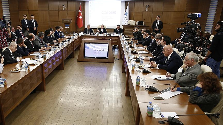 Türkiye İşveren Sendikaları Konfederasyonunun (TİSK) ev sahipliğinde gerçekleşen toplantıya, 5'i işçi kesimini, 5'i işveren kesimini, 5'i de kamuyu temsil eden toplam 15 kişi katılıyor.