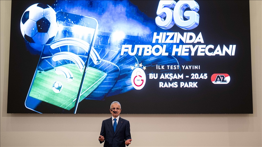 "5G'nin, üretim noktalarında robotların kullanılmasından bazı makinelerin uzaktan kumanda edilebilmesine kadar birçok faydası olacak. Bu sene ihalesini yapacağız, 2026'da 5G'ye Türkiye genelinde geçmiş olacağız. Statlarda da denemesini yapıyoruz, bu akşamki Galatasaray ile AZ Alkmaar arasındaki maçta statta ilk kez 5G'yi denemiş olacağız."