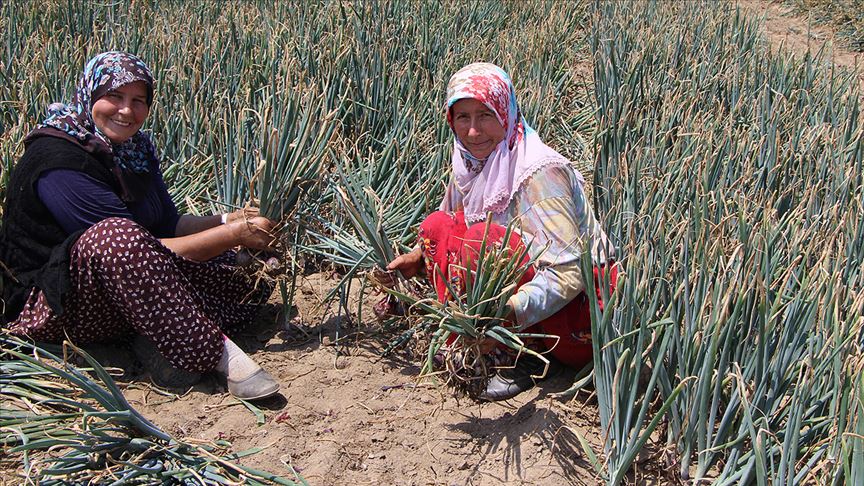 Balıkesir'in Erdek ilçesinde, genellikle balığın yanında tüketilmesinden dolayı "balık soğanı" olarak da bilinen ürünün hasadına yaklaşık 450 dekar alanda başlandı.