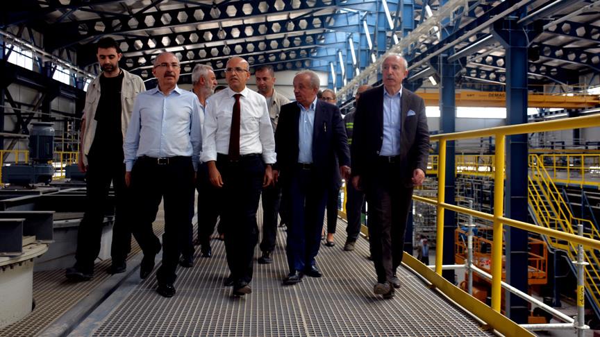 2018 yılı ortasında üretime başlaması planlanan tesis ile ilgili Cengiz Holding Yönetim Kurulu Başkanı Mehmet Cengiz'den bilgi alan Şimşek, üretim sahasını gezdi.