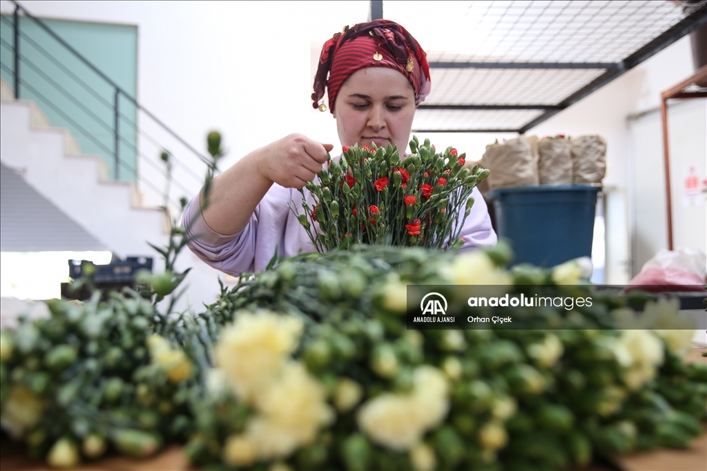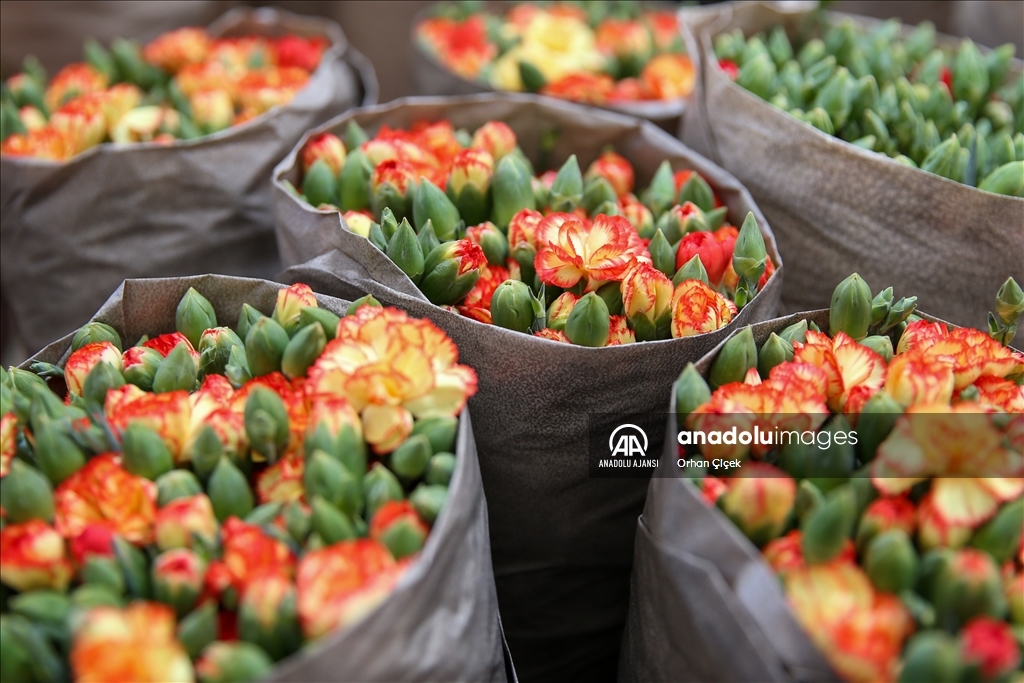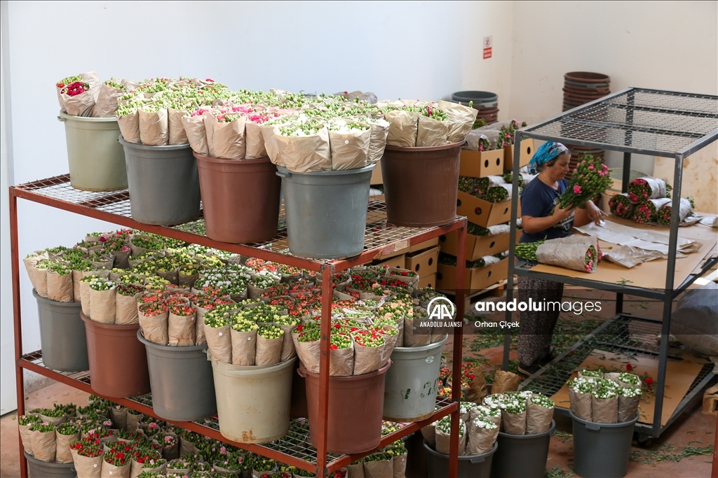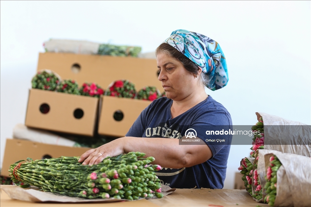 Ülke genelindeki kesme çiçek üretiminin büyük bir bölümünün yapıldığı Antalya'da, seralarda üretilen çiçekler toplanıp depolarda paketleniyor, yurt içi ve yurt dışı pazar için hazırlanıyor.