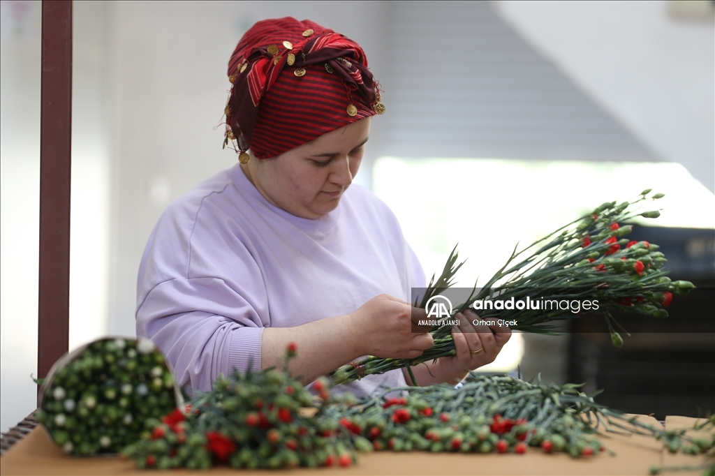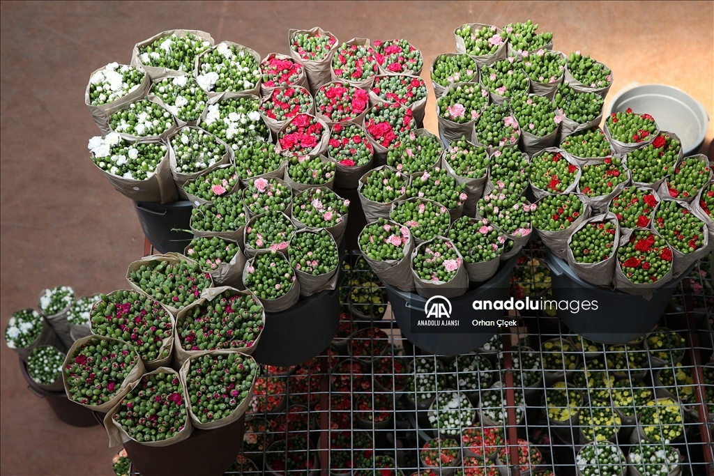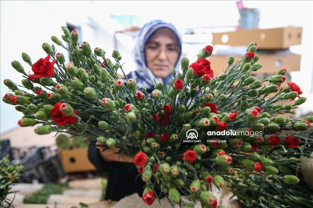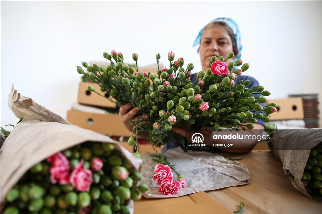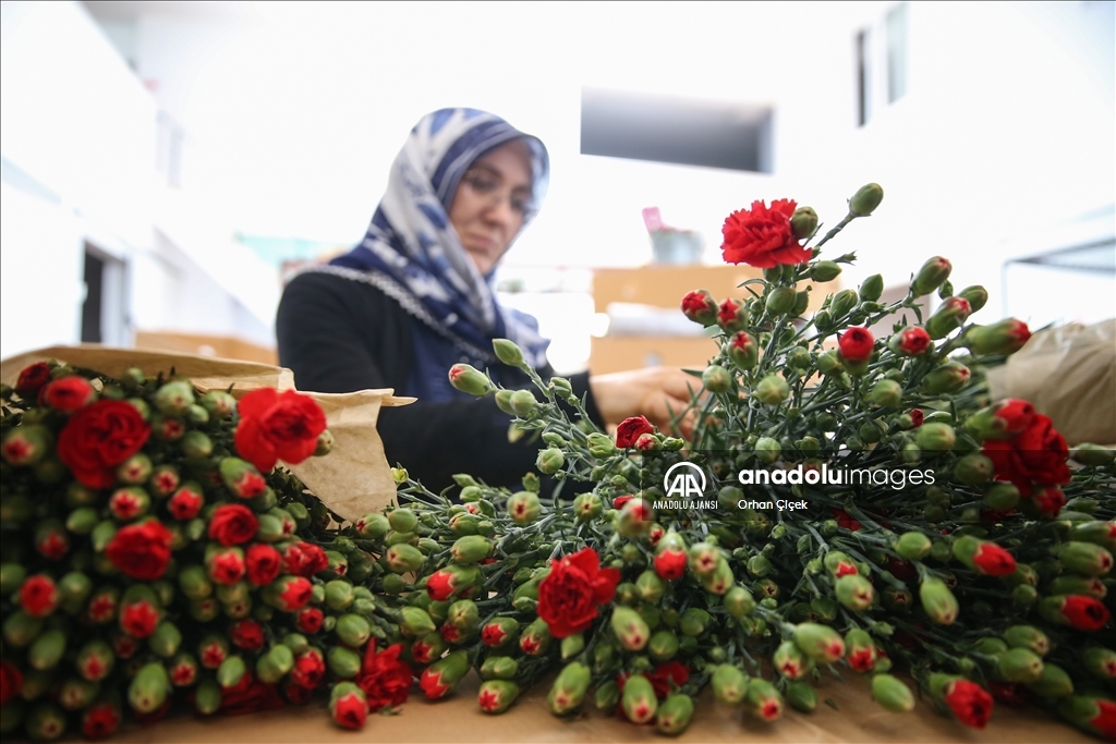 Ülke genelindeki kesme çiçek üretiminin büyük bir bölümünün yapıldığı Antalya'da, seralarda üretilen çiçekler toplanıp depolarda paketleniyor, yurt içi ve yurt dışı pazar için hazırlanıyor.