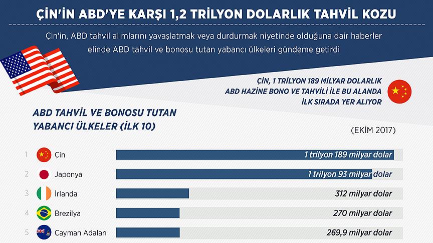 Ekim 2017 itibarıyla 1 trilyon 189 milyar dolarla en fazla ABD hazine bono ve tahvilini elinde tutan ülke olan Çin'i, 1 trilyon 93 milyar dolarlık tahvile sahip olan Japonya takip ediyor.
