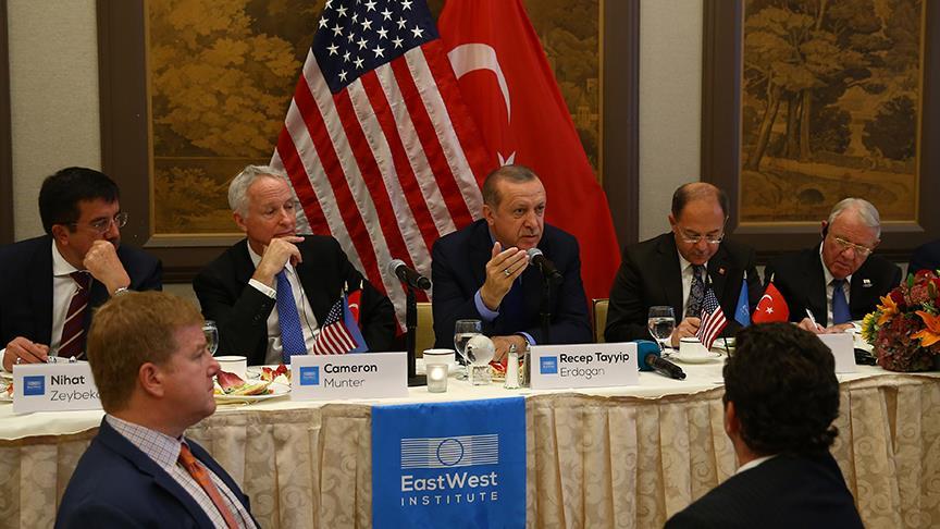 EastWest Enstitüsü'nün ev sahipliğinde, Başbakanlık Türkiye Yatırım Destek ve Tanıtım Ajansı (TYDTA) koordinasyonuyla düzenlenen toplantıya ilişkin yapılan yazılı açıklamada, Cumhurbaşkanı Erdoğan'ın Birleşmiş Milletler'in (BM) 72. Genel Kurul görüşmelerine katılmak üzere gittiği Amerika Birleşik Devletleri’nin New York kentinde bilişim, ilaç, havacılık, gıda, finans ve enerji başta olmak üzere birçok sektörde faaliyet gösteren firmaların üst düzey temsilcileriyle bir araya geldiği belirtildi.
