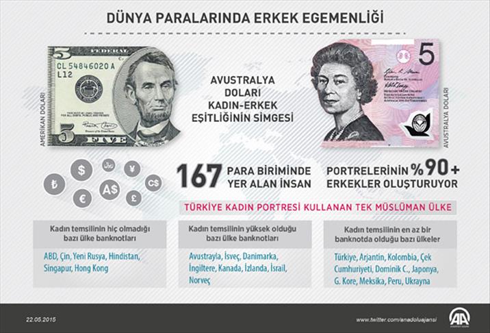 Dünyadaki 167 resmi para biriminde yer alan insan portrelerinin yüzde 90’ından fazlasını erkekler oluştururken, sadece 34 ülke banknotlarında kadın portrelerine yer veriyor.