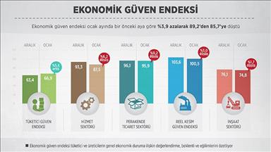 AA muhabirinin Türkiye İstatistik Kurumu verilerinden derlediği bilgiye göre, tüketici ve üreticilerin genel ekonomik duruma ilişkin değerlendirme, beklenti ve eğilimlerini özetleyen bir bileşik endeks olan ekonomik güven endeksi, geçen yılın başında 99,3 seviyelerinde bulunuyordu.