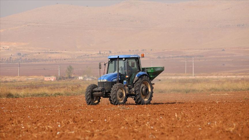 Tarlalarını çeşitli işlemlerden geçiren Şanlıurfalı çiftçiler, ardından tohum ekiyor, gübre atıyor.