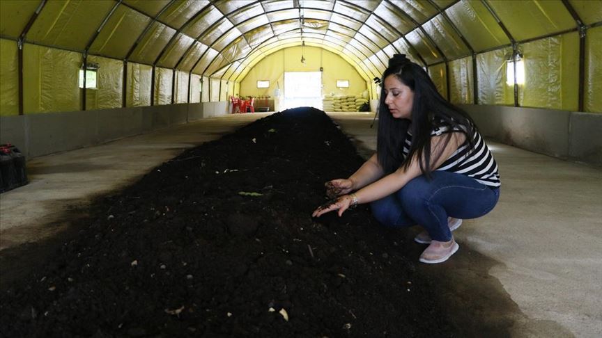 Hatay'ın Arsuz ilçesinde 3 çocuk annesi kadın girişimci, evinin yanına kurduğu çadırda 4 milyon solucanla yılda 35 ton gübre üretimi yaparak aile ekonomisine katkıda bulunuyor.