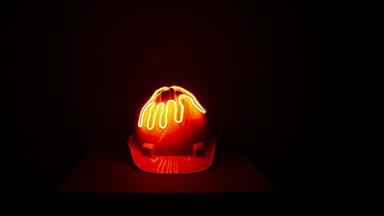 İşçinin kafasında 34 ülkeden baret var