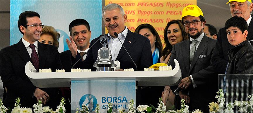 Pegasus Hava Yolları hisselerinin borsada işlem görmeye başlaması dolayısıyla Borsa İstanbul'un İstinye'deki merkezinde gong töreni gerçekleştirildi.