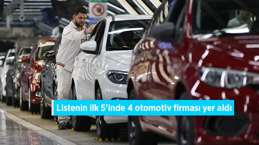 Araştırmaya göre, ilk 10 şirket arasında yer alan 5 otomotiv şirketi listeye damgasını vurdu. Listede 2'nci sırada Ford Otomotiv, 3'üncü sırada bir önceki yıla göre 3 basamak yükselen Toyota Otomotiv Sanayi Türkiye AŞ bulunuyor.
