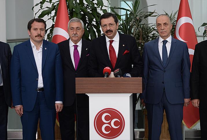 Türkiye Odalar ve Borsalar Birliği (TOBB) Başkanı Rifat Hisarcıklıoğlu, MHP Genel Başkanı Devlet Bahçeli'ye bir an önce koalisyon hükümetinin kurulması talebini ilettiklerini söyledi.