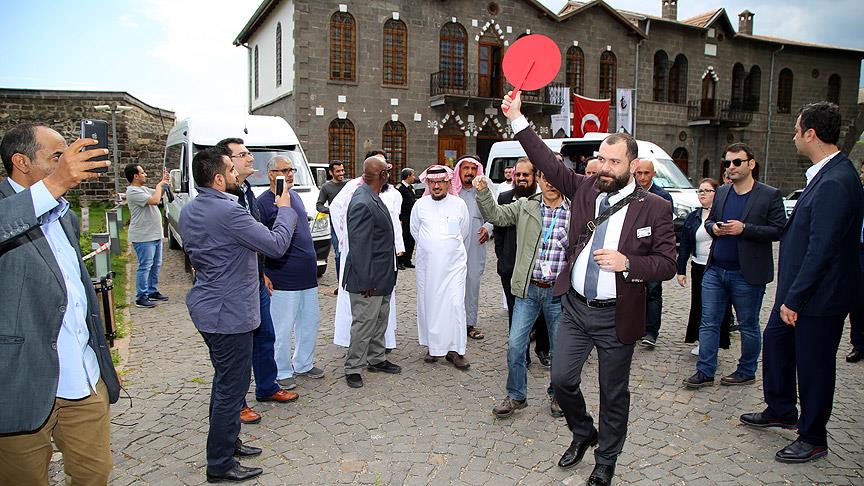Körfez ülkeleriyle tarım ve hayvancılık alanında ticareti geliştirmek ve bu ülkelerden bu alanlarda bölgeye yatırımcı çekmek amacıyla davet edilen 50 girişimci, geldikleri Diyarbakır'da yöresel yemek yapılan lokantada yemek yedikten sonra Sur ilçesindeki tarihi İçkale Müze Kompleksi'ni dolaştı.