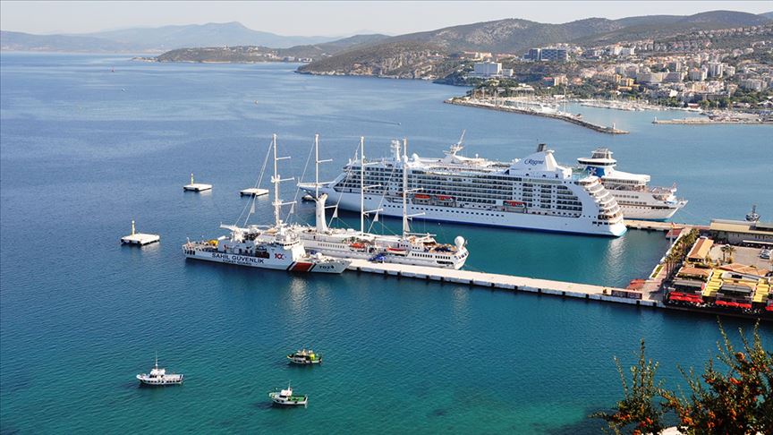 Kuşadası Limanı'na 3 dev gemi birden yanaştı