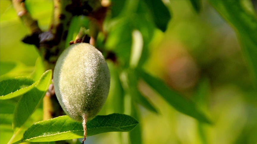 Tarım ve Orman Bakanlığı Tarımsal Araştırmalar ve Politikalar Genel Müdürlüğüne (TAGEM) bağlı enstitüdeki bahçede geçen ay çiçek açan badem ağaçları. meyve vermeye başladı.