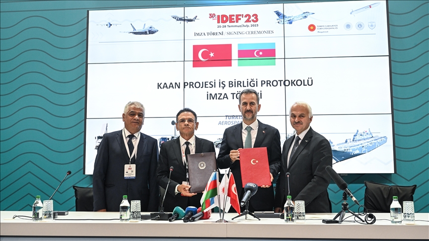 Cumhurbaşkanlığı Savunma Sanayii Başkanlığı (SSB) şahitliğinde, Azerbaycan Savunma Bakanlığı ve TUSAŞ AŞ arasında Milli Muharip Uçak Geliştirme İş Birliği İmza Töreni 16. Uluslararası Savunma Sanayii Fuarı IDEF'te gerçekleştirildi.