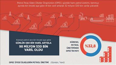 Uluslararası Enerji Ajansı verilerine göre, Eylül 2018'de 100,3 milyon varil olan günlük ortalama küresel petrol üretimi, Eylül 2019'da 99,3 milyon varil olarak kayıtlara geçti.