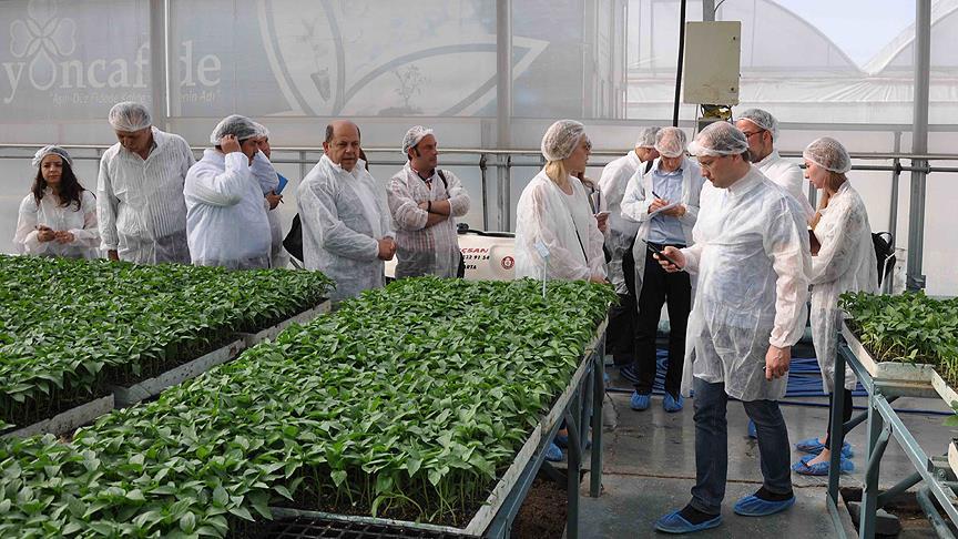 Marul, kabak ve biber başta olmak üzere ihraç ürünlerinin dikim safhasından hasadına kadar olan süreçteki çalışmaları inceleyen heyet, paketleme ve nakil konularında da bilgi aldı.