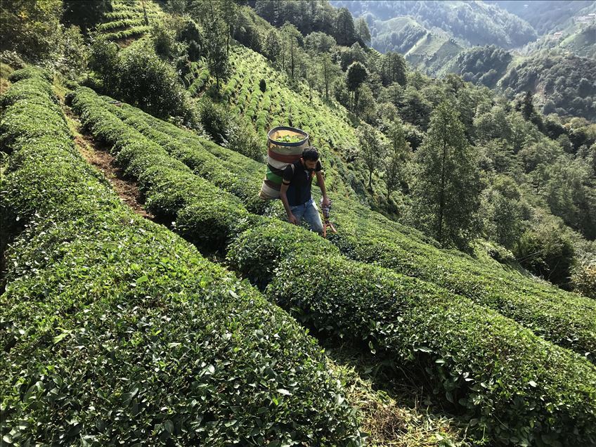 Doğu Karadeniz'de, Artvin, Rize, Trabzon ve Giresun'da 787 bin 692 metrekare alanda yaklaşık 197 bin müstahsil tarafından gerçekleştirilen çay hasadı, Kovid-19 sürecine rağmen verimli geçti. ( Fikret Delal - Anadolu Ajansı )