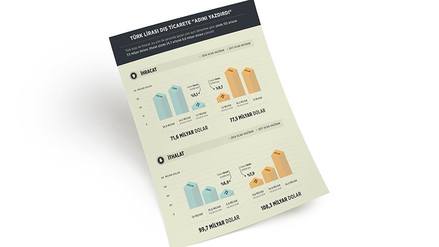Söz konusu dönemde toplam dış ticaret içinde Türk lirasının payı ise yüzde 6,2'den yüzde 8,6'ya yükseldi ve tutarı 16 milyar doları aştı.