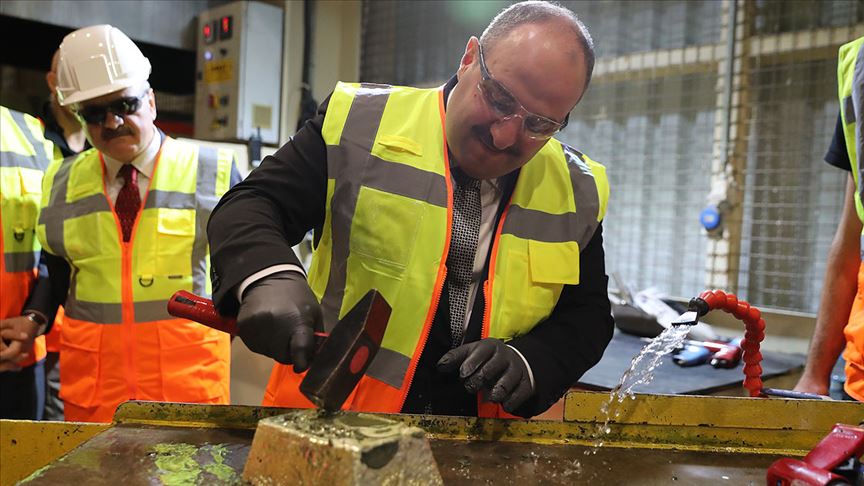 Döküm tesisinin ardından cevher çıkarma işleminin gerçekleştirildiği açık ocak sahasını gezen Varank, burada patlatma işlemini gerçekleştirmek üzere düğmeye bastı.