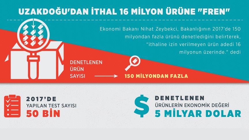 Zeybekci, geçen yıl yaklaşık 50 bin testle Uzakdoğu menşeli, 5 milyar dolar ithalat değerine sahip 150 milyondan fazla ürünü denetlediklerini belirterek, şöyle devam etti: