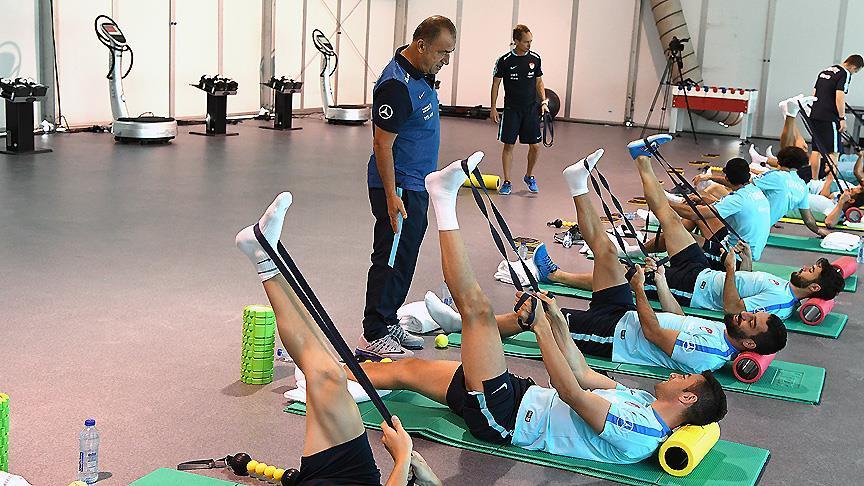 Türkiye Futbol Direktörü Fatih Terim yönetiminde basına açık gerçekleştirilen antrenman, ABD'li atletik performans antrenörü Scott Piri'nin yaptırdığı fiziksel çalışmalarla başladı. Pas çalışmasıyla devam eden idman, geniş alanda yapılan 3 kaleli taktik maçla tamamlandı.