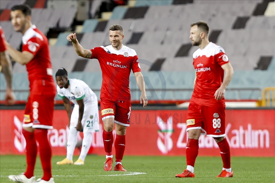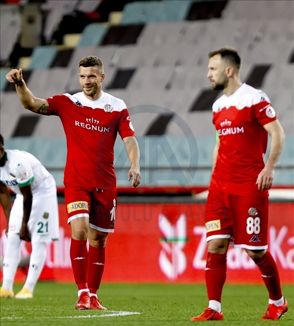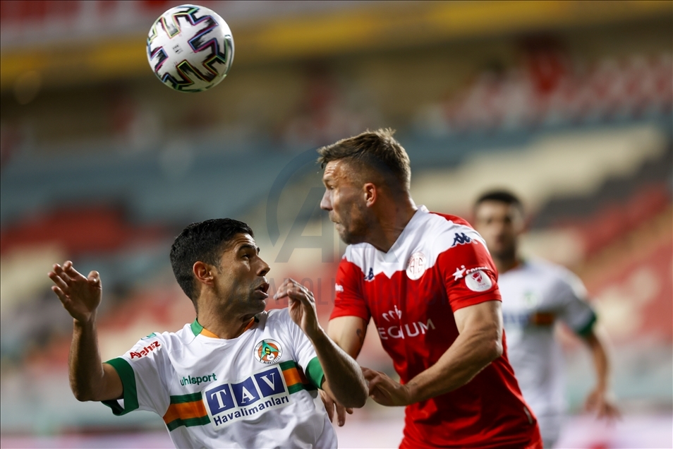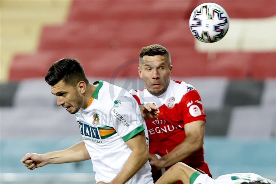 Maçın 17. dakikasında Fraport TAV Antalyaspor öne geçti. Sağ kanattan gelişen ev sahibi ekip atağında, Bünyamin Balcı'nın pasıyla ceza sahası içerisinde topla buluşan Podolski, kendi etrafında döndükten sonra yaptığı sert vuruşla meşin yuvarlağı kaleci Marafona'nın sağından ağlarla buluşturdu: 1-0