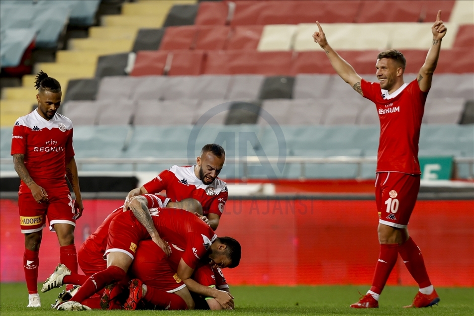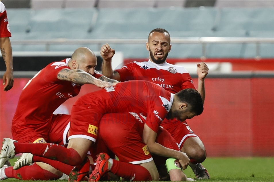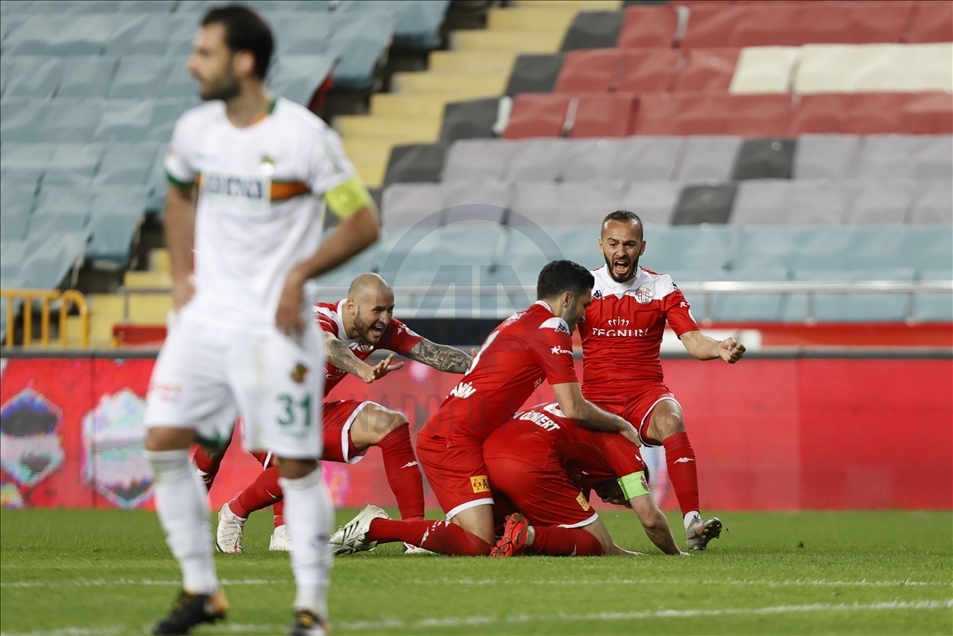 Ziraat Türkiye Kupası'nda tek maç eleme usulüne göre oynanan yarı final turunda Fraport TAV Antalyaspor, Antalya Stadyumunda Aytemiz Alanyaspor karşılaştı. Antalyaspor oyuncuları gol sevinci yaşadı. ( Mustafa Çiftçi - Anadolu Ajansı )