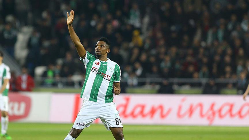 Bu arada Eto'o, müsabaka öncesi ısınmak için sahaya çıktığında bir grup Antalyaspor taraftarı protestoda bulundu.